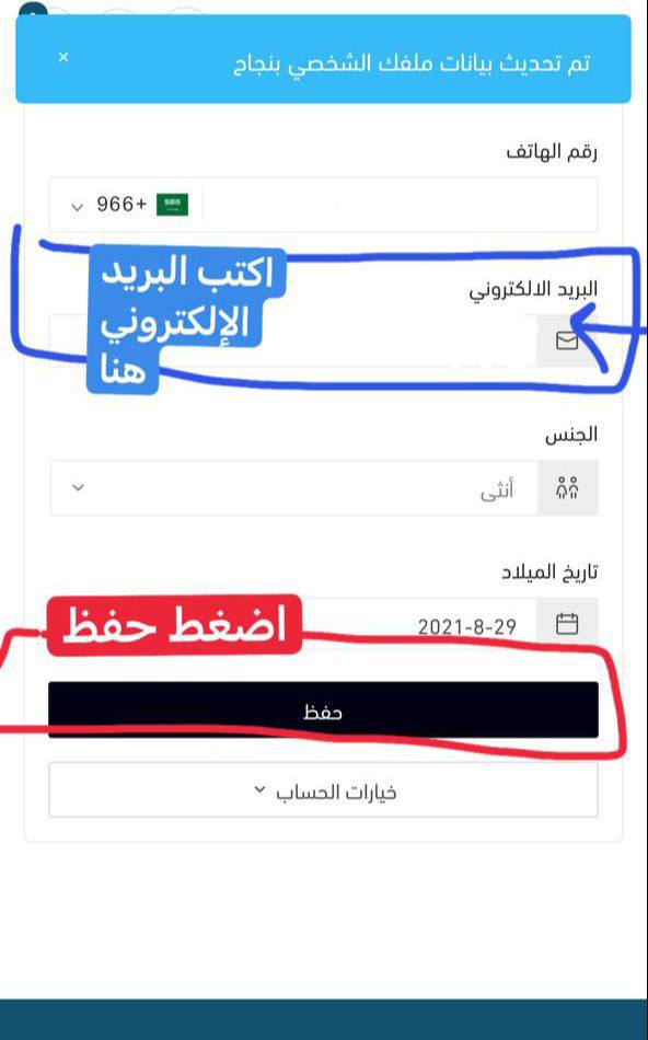 اضغط هنا لرؤية وتعديل ايميلك المسجل بالموقع